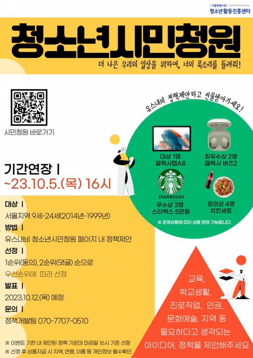 2023년 유스내비 청소년시민청원 정책제안 이벤트 연장운영