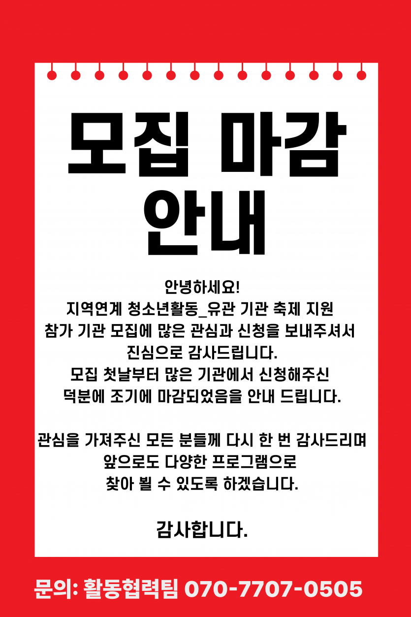[안내] 지역연계 청소년활동 지원 _ 유관 기관 축제 지원 모집 마감 안내