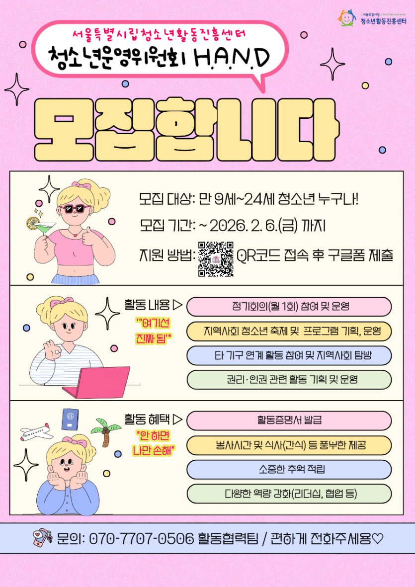 청소년이 직접 기획하고 운영하는 청소년운영위원회 H.A.N.D 모집 중!