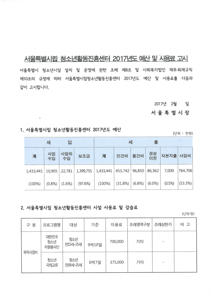 목록 서울시립청소년활동진흥센터 2017년도 예산 및 사용료 고시 페이지 정보 작성자 관리자 댓글 0건 조회 3,745회 작성일 2017-02-22 본문 추천0 이전글2017년도 신규 대학생지도자 면접일정 안내 17.02.23 다음글2017 청소년특성화동아리 설명회 일정 안내 17.02.22 댓글 0 댓글목록 등록된 댓글이 없습니다. 목록
