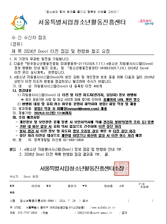 [공지] 2024년 Dovol 터전 점검 및 현행화 협조 요청