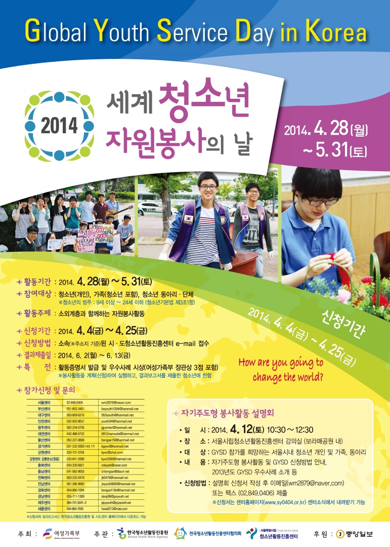 2014 세계청소년자원봉사의날(GYSD) 참석 안내