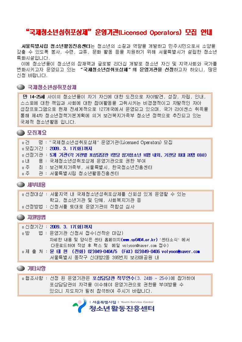 수정 삭제 목록 국제청소년성취포상제 운영기관 모집 안내 페이지 정보 작성자 윤태현 댓글 0건 조회 3,233회 작성일 2009-05-14 본문 추천0 이전글청소년수련활동인증제 교육 설명회 09.05.15 다음글2009 청소년동아리 지원사업 신청 안내 09.05.14 댓글 0 댓글목록 등록된 댓글이 없습니다. 수정 삭제 목록