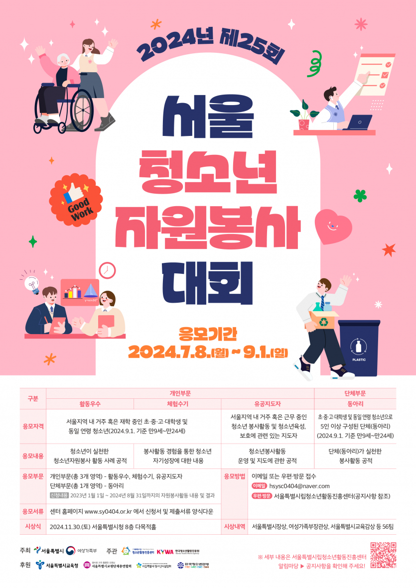 올해로 25회를 맞이한「서울청소년자원봉사대회」에 많은 관심과 응모 부탁드립니다.