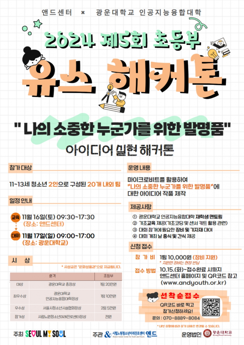 . 대 회 명: 2024년 제5회 초등부 유스해커톤 대회