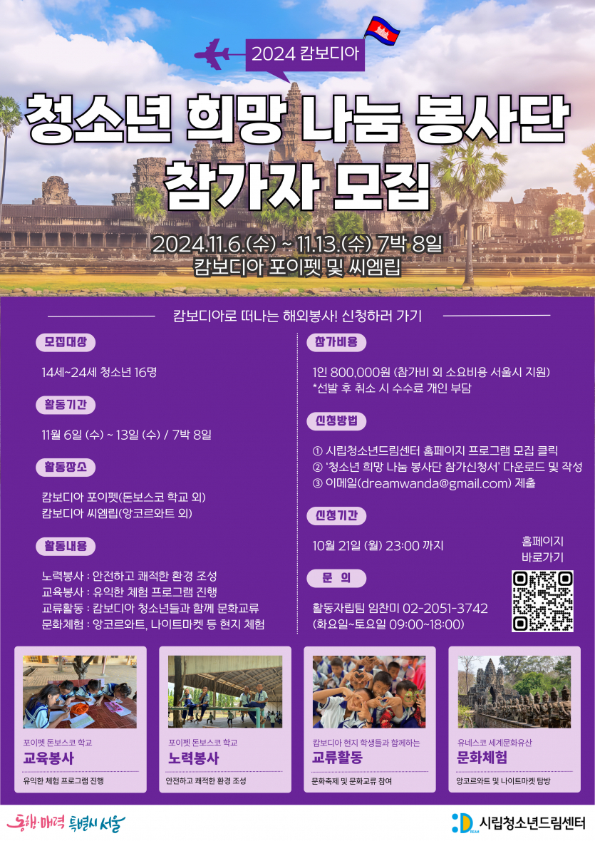 [양천구] [청소년드림센터] 2024 캄보디아 청소년 희망 나눔 봉사단 참가 모집안내