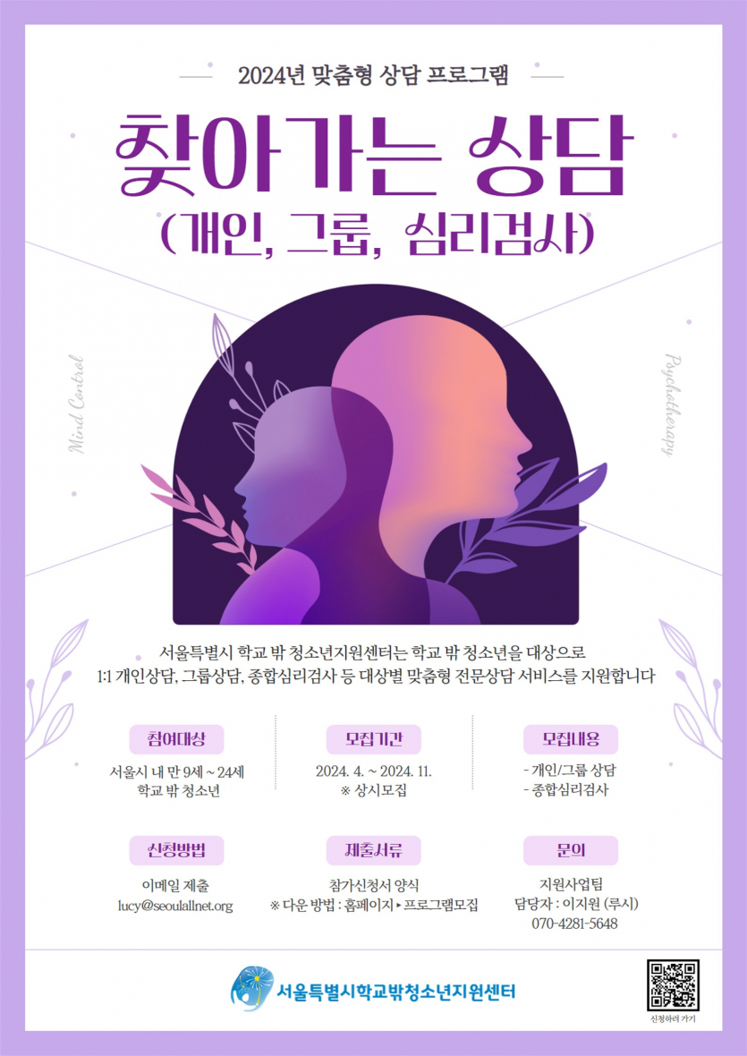 [동작구] [학교밖청소년지원센터] 2024년 찾아가는 상담 및 심리검사 참여자 모집 안내