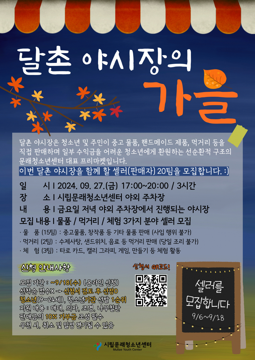 [영등포구] [문래청소년센터] 2024년 청소년 프리마켓 '달촌 야시장의 가을(Autumn)' 청소년 셀러 모집 안내