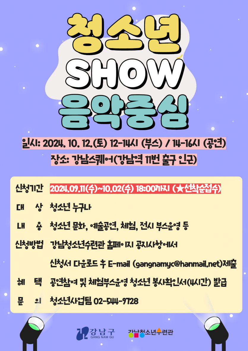 [강남구] [강남청소년수련관] 2024년 강남구 청소년어울림마당 <청소년 Show 음악중심> 신청 및 홍보 안내