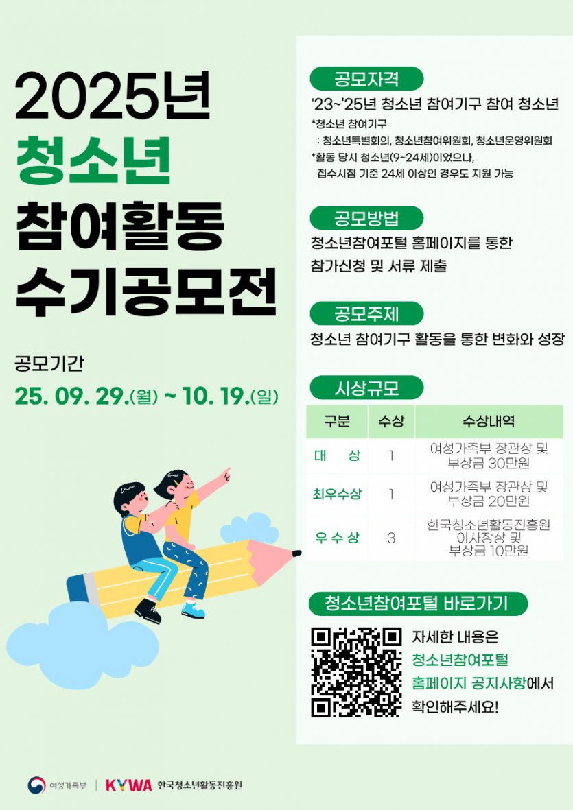 [공지] [서울특별시] 2025년 청소년 참여활동 수기 공모전 추진 안내