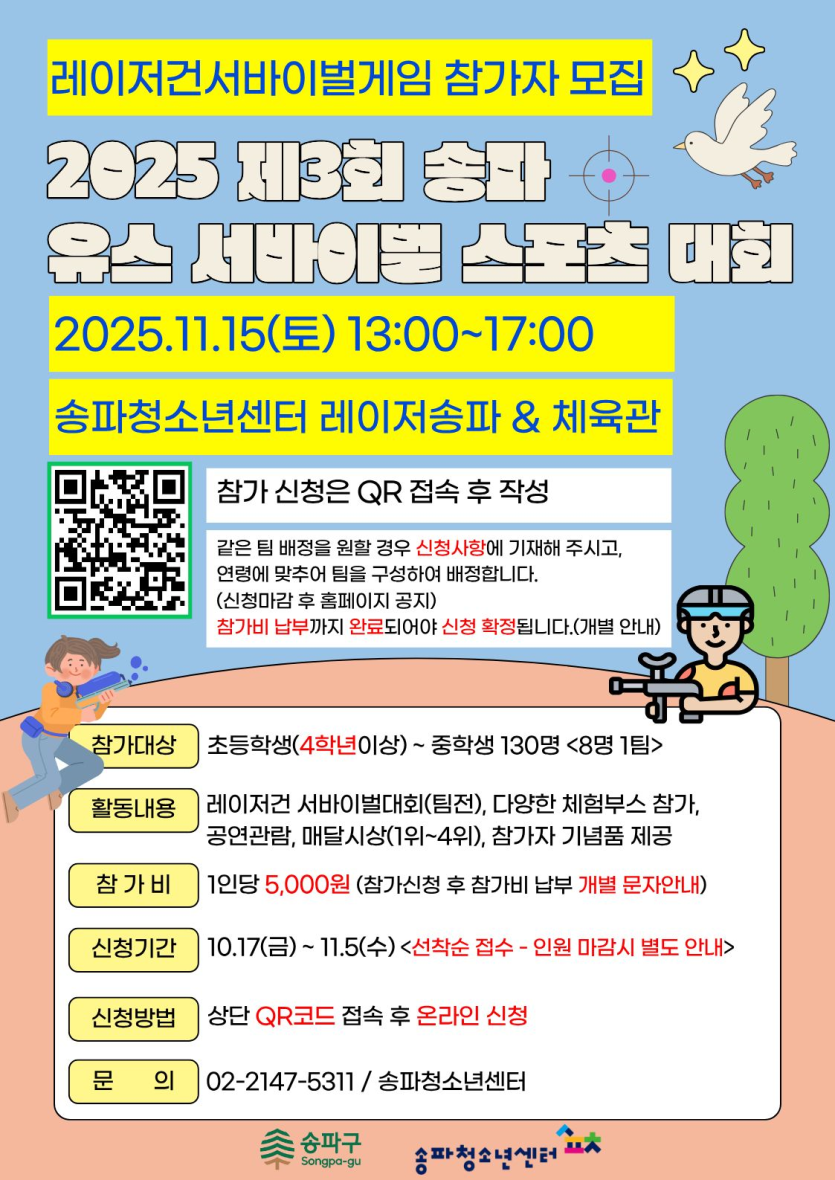 [송파구] [송파청소년센터] 2025 송파 유스 서바이벌 스포츠대회 안내