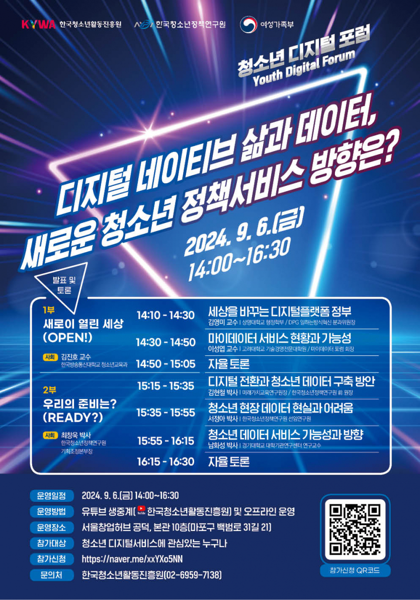 ㅇ 포럼주제: 디지털 네이티브 삶과 데이터, 새로운 청소년 정책서비스 방향은?