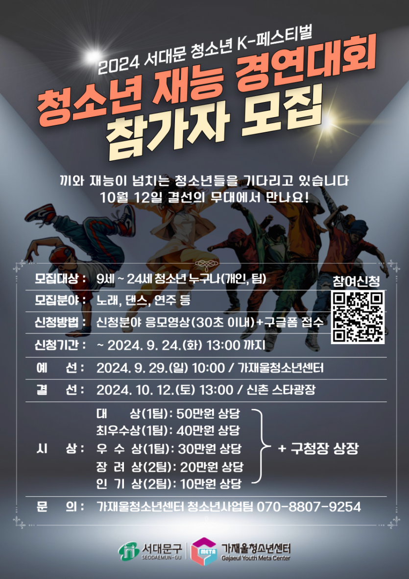 . 예선일시: 2024. 9. 29.() 10:00 / 가재울청소년센터 개별연락 예정이며 일정 변경될 수 있음