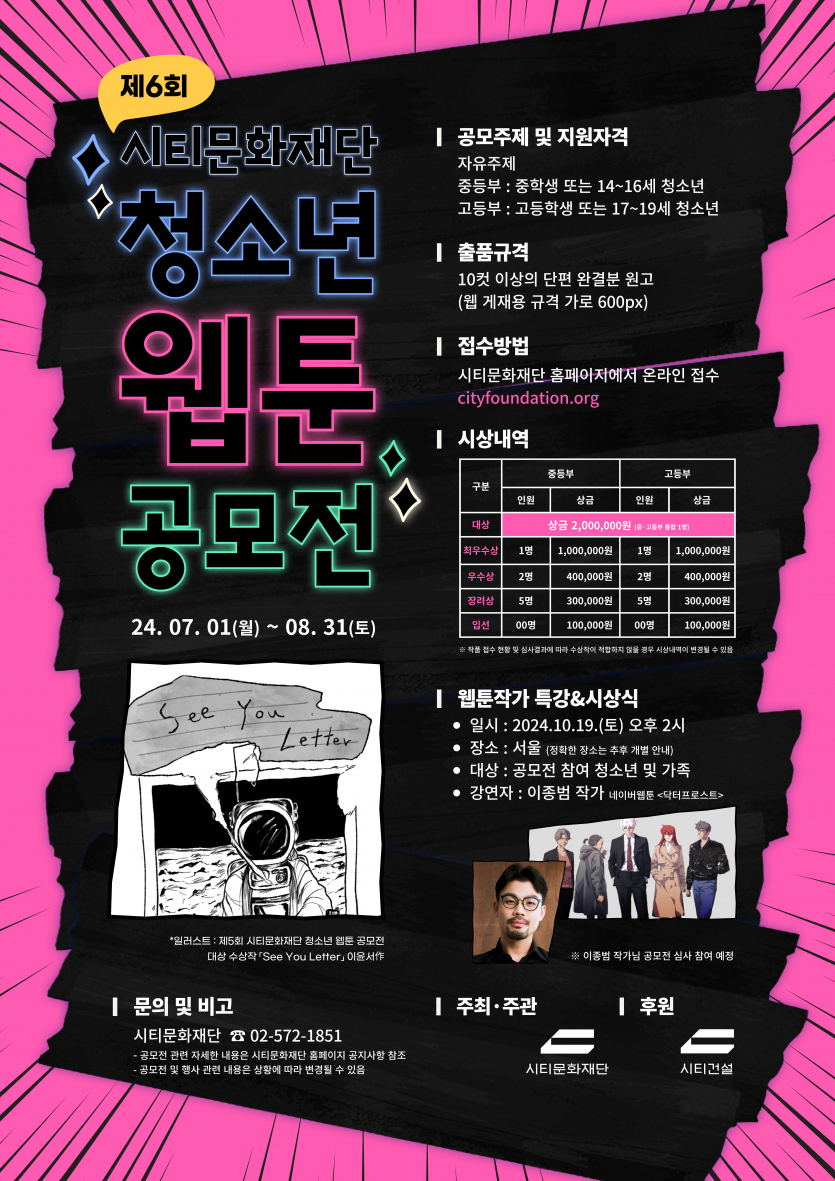 [서울 외] [시티문화재단] 제6회 시티문화재단 청소년 웹툰 공모전 안내