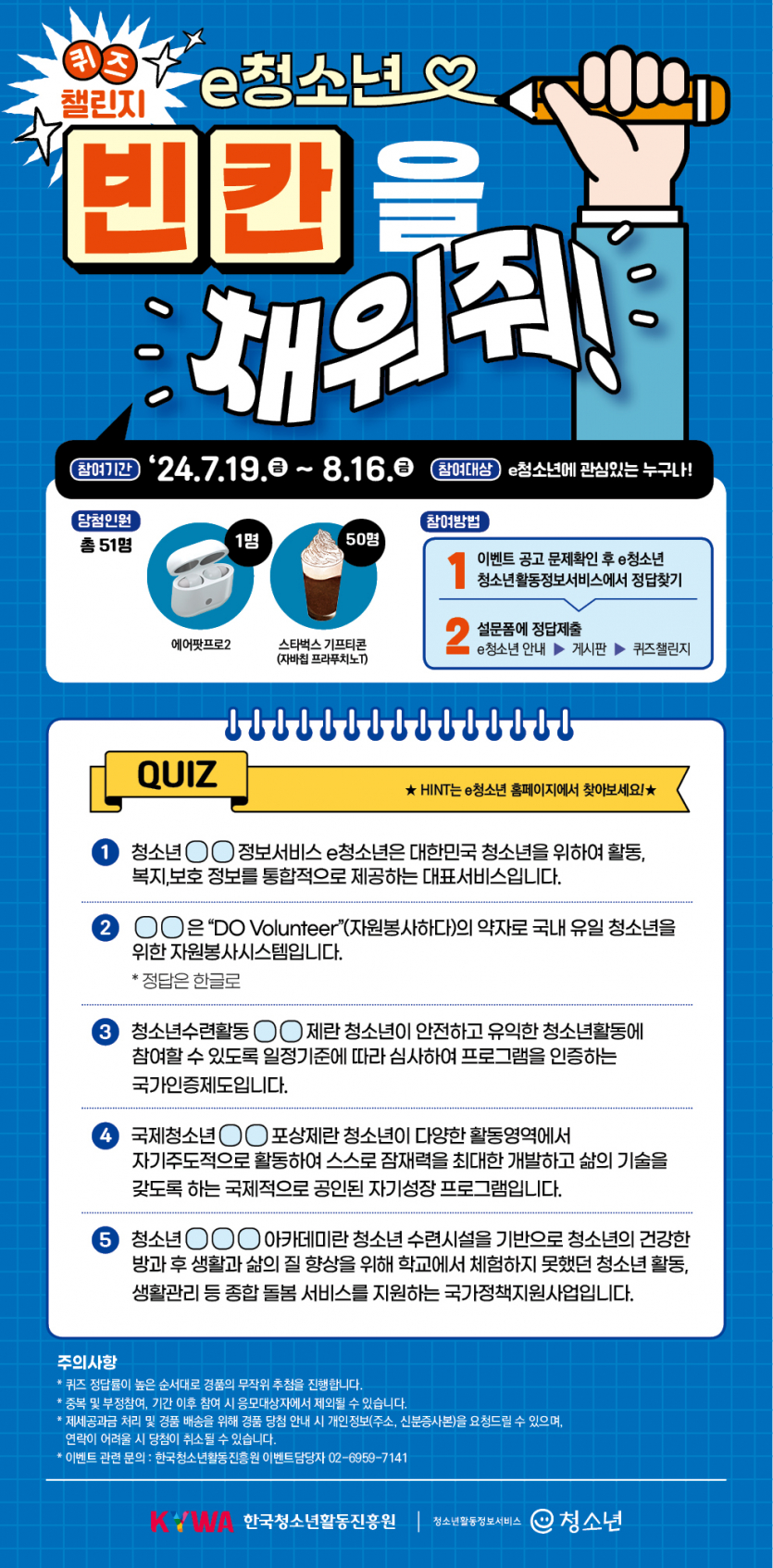 1) 이벤트명: 퀴즈 챌린지: e청소년 빈칸을 채워줘!