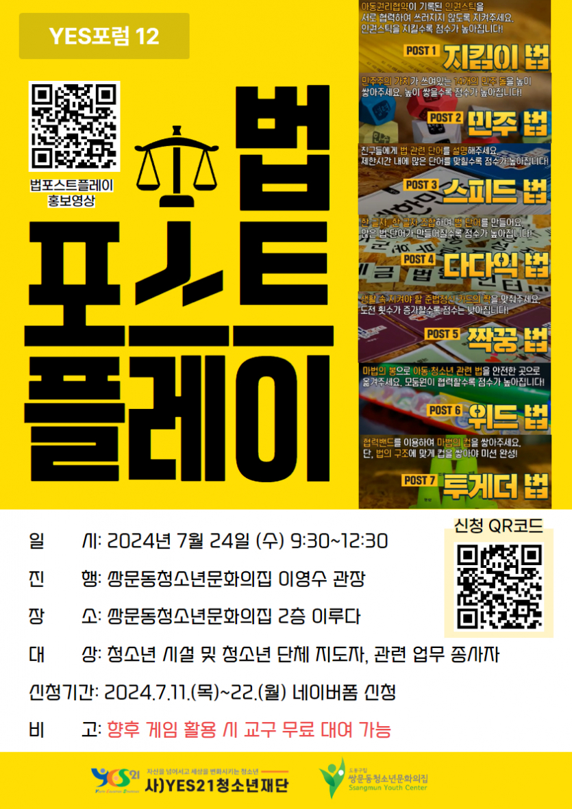 붙임 제12회 YES포럼「법 포스트 플레이」포스터 1부. 끝.