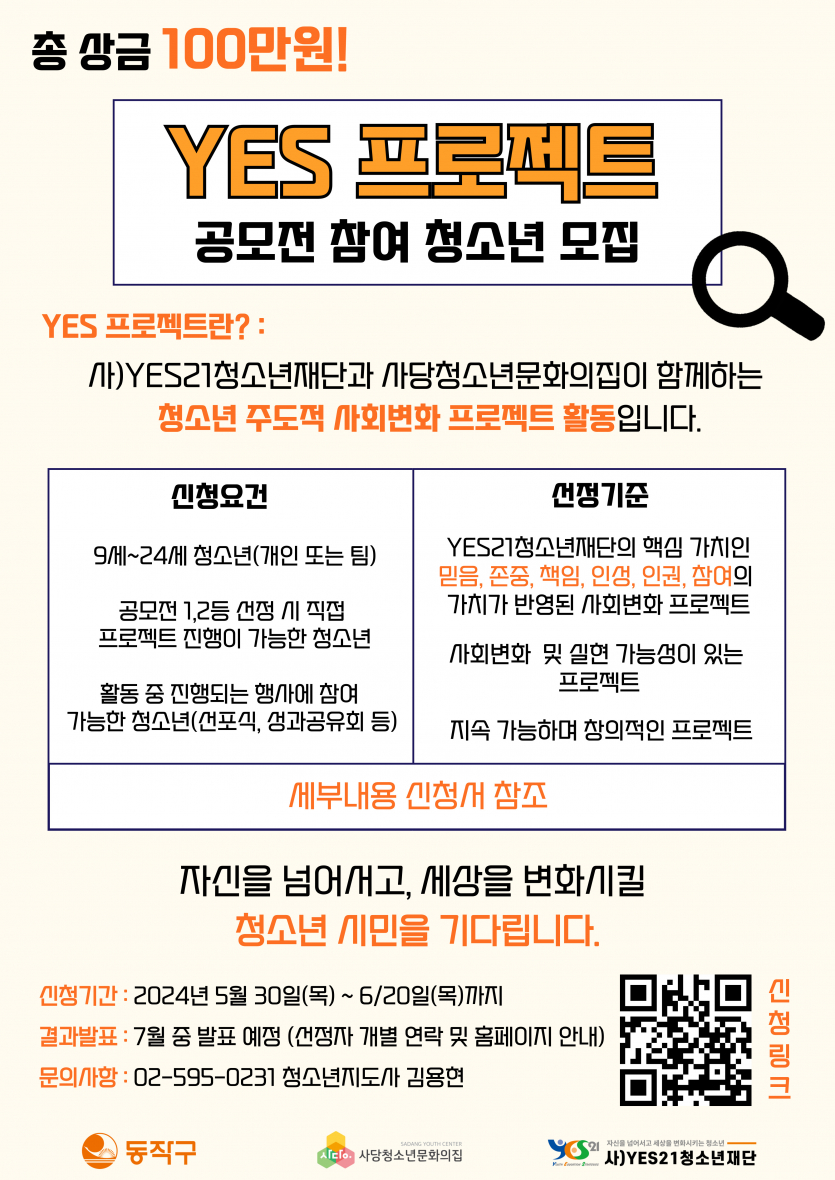 [동작구] YES 프로젝트 공모전 참여 청소년 모집