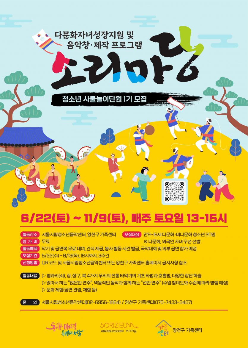 가. 제 목: 청소년 사물놀이 <소리마당> 참가 모집 홍보 요청(다문화, 비다문화 가정 청소년)