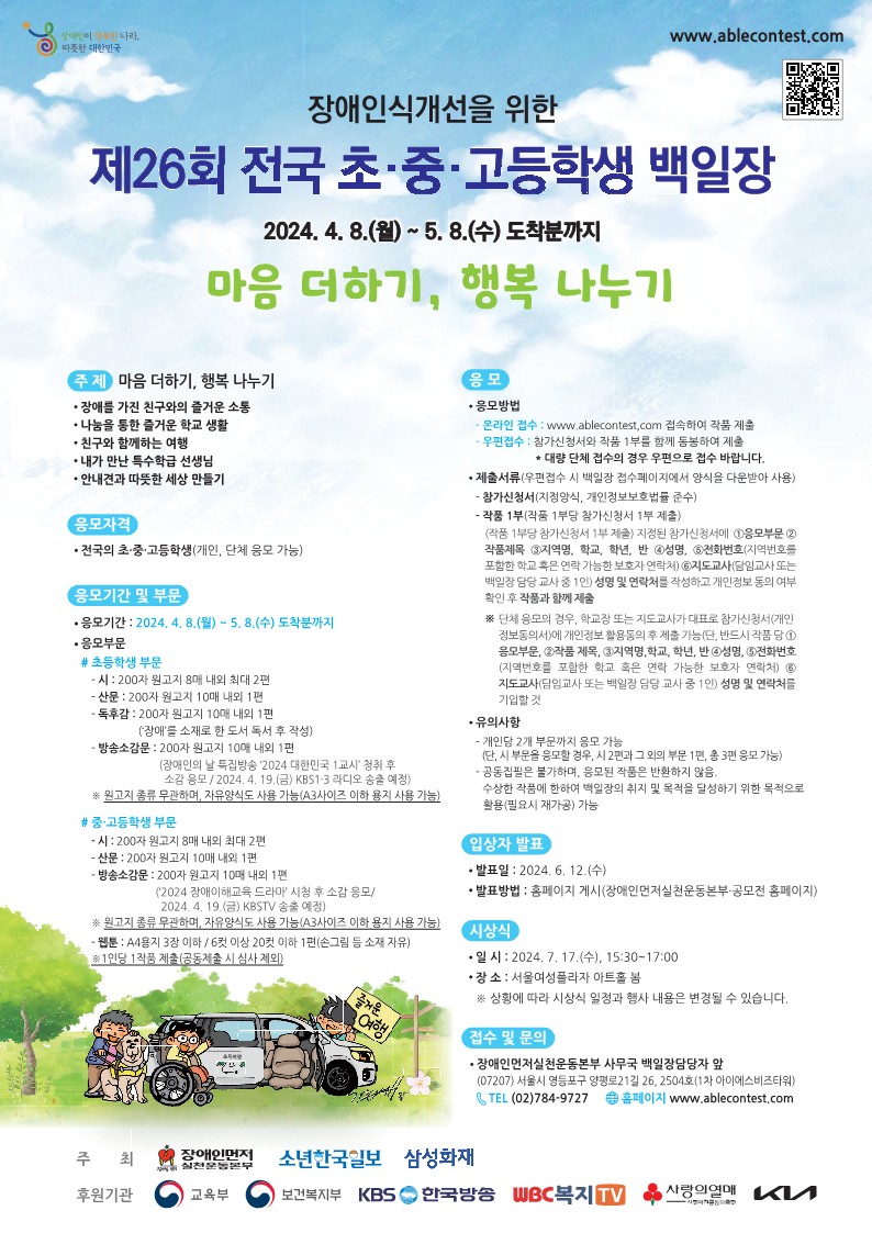 8. 문의 : 장애인먼저실천운동본부 백일장 담당자(02)784-9727