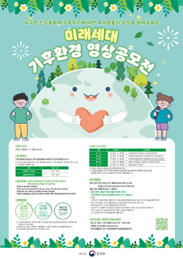 ⊙참가대상 : 기후·환경에 관심있는 전국 초등학생(4~6학년) 및 전국 중학생 누구나