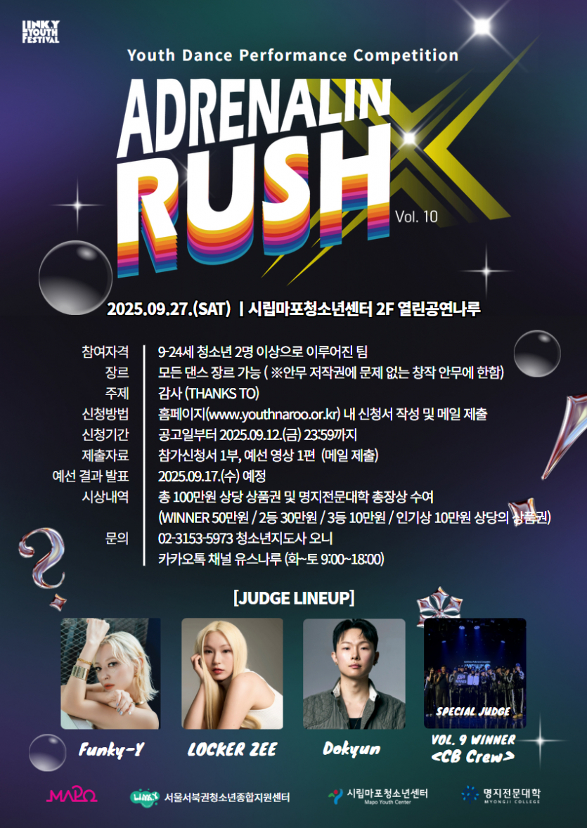 [마포구] [시립마포청소년센터] 2025년 청소년댄스퍼포먼스대회 [아드레날린러쉬X]