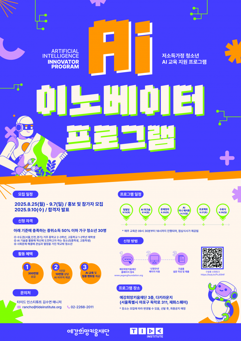 [강남구] [(사)타이드인스티튜트]저소득가정 청소년 대상 A I 이노베이터 프로그램