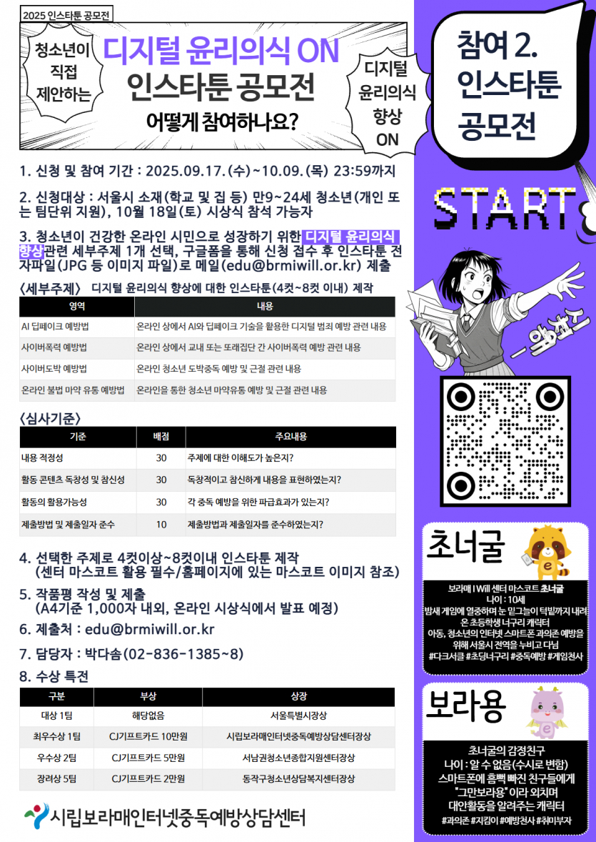 [동작구] [시립보라매인터넷중독예방상담센터]2025년 서울특별시장배 제4회 청소년디지털미디어중독예방 '워크온 걷기 챌린지 및 인스타툰 창작 공모전(선착순)'