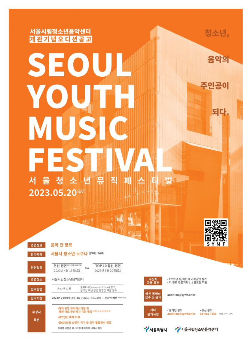 목록 [홍보] 2023년 서울시립청소년음악센터 "서울청소년뮤직페스티벌" 홍보안내 페이지 정보 작성자 관리자 댓글 0건 조회 1,787회 작성일 2023-03-08 본문 이전글2023 청년예술지원 선정 프로젝트 연극 <쉬는 시간> 청소년극 워크숍 참여자 모집 23.03.13 다음글[홍보] 2023. 동작미래교육지구 "만약에 프로젝트" 홍보 안내 23.03.08 댓글 0 댓글목록 등록된 댓글이 없습니다. 목록