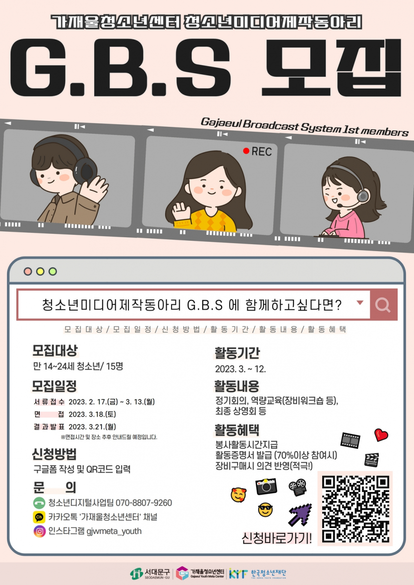 [모집] 청소년미디어제작동아리 「G.B.S」 모집