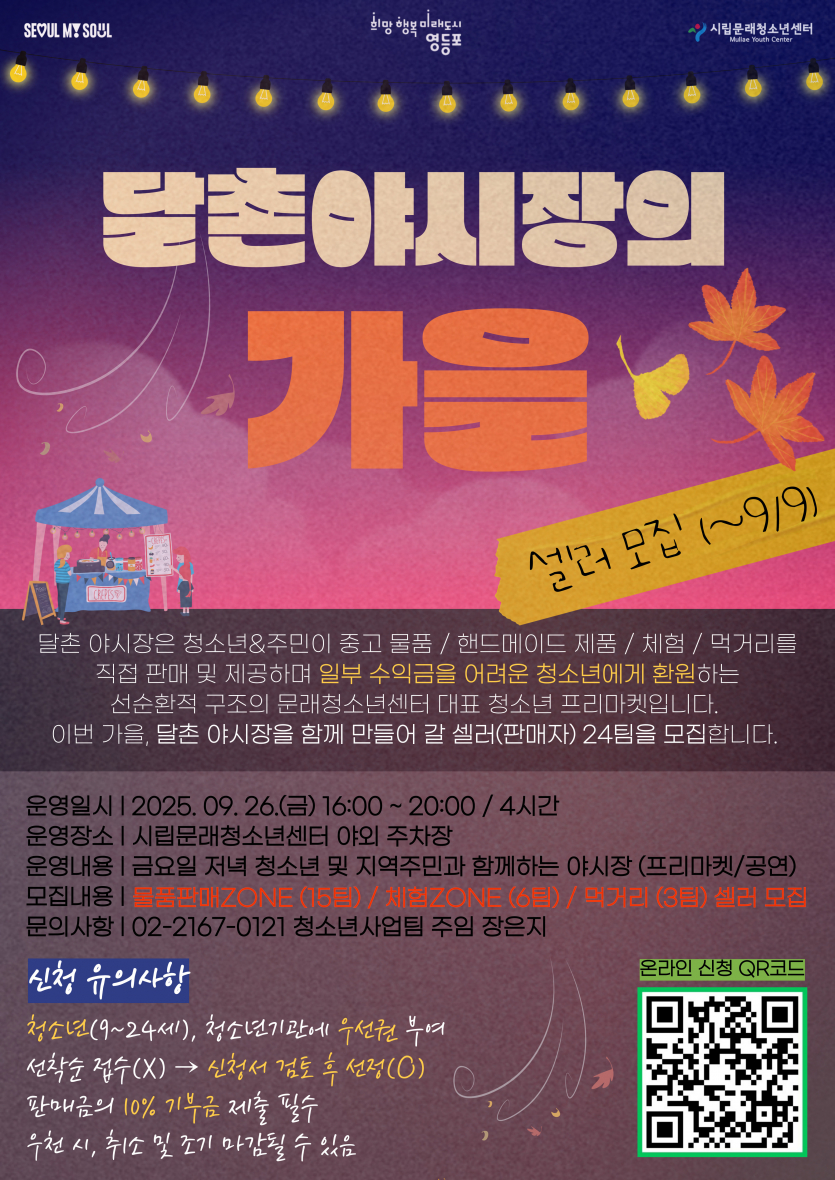 [영등포구] [문래청소년센터] 2025년 청소년 프리마켓 [달촌 야시장의 가을] 청소년셀러 모집안내