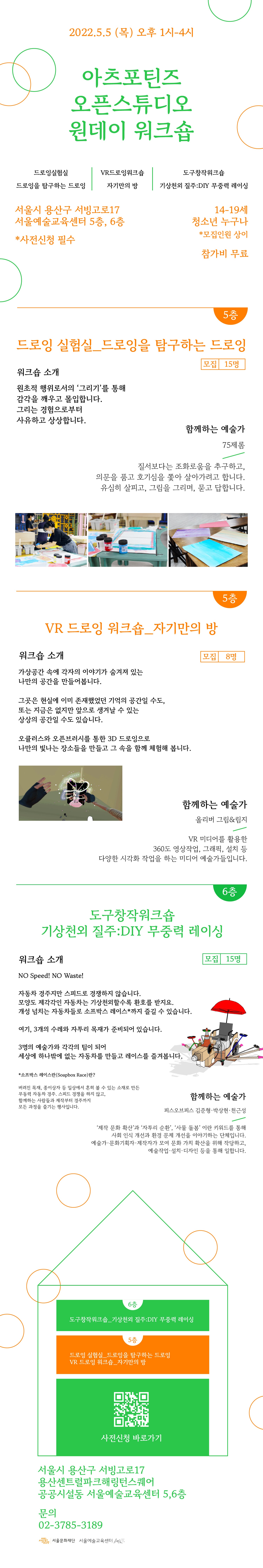 [모집]2022 서울문화재단 서울예술교육센터 아츠포틴즈(ARTS FOR TEENS) 오픈 스튜디오 원데이 워크숍