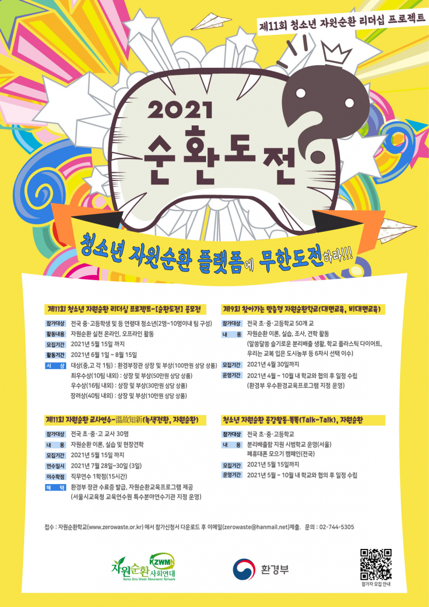 [청소년활동]제11회 청소년 자원순환 리더십 프로젝트-[순환도전]공모전 참가자모집