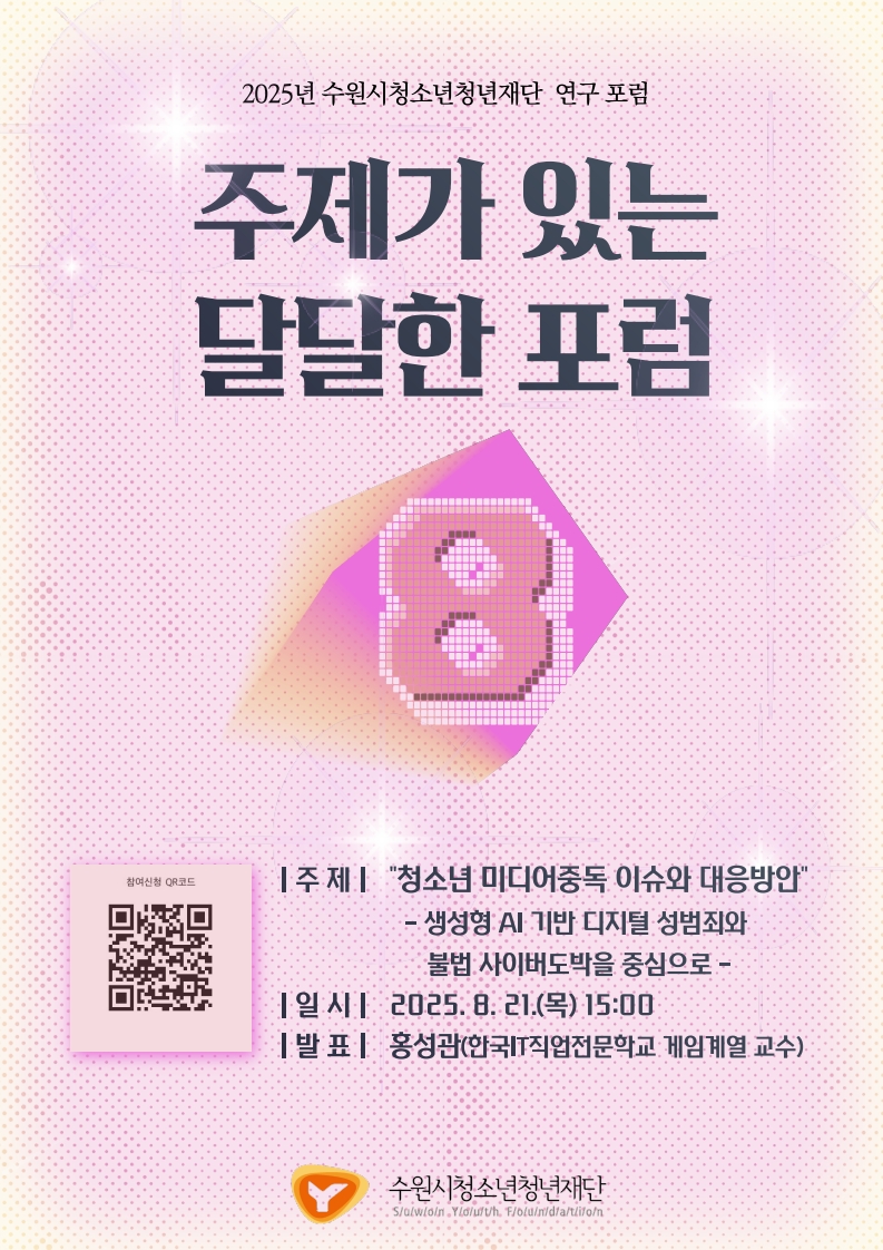 [서울 외] [수원시청소년재단] 8월〈주제가 있는 달달한 포럼〉참석 안내