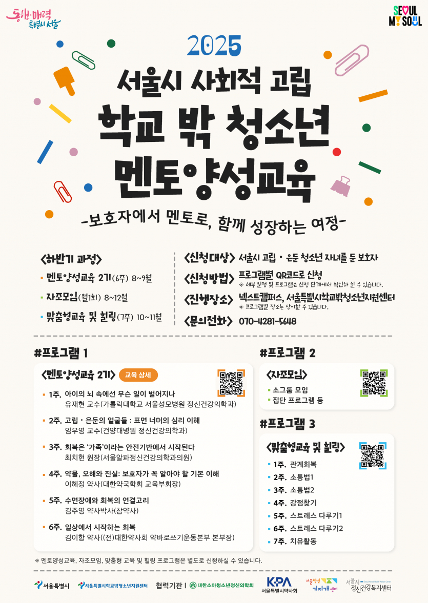 [동작구] [서울특별시학교밖청소년지원센터]2025 서울시 사회적 고립 학교 밖 청소년 멘토양성교육 및 하반기 프로그램