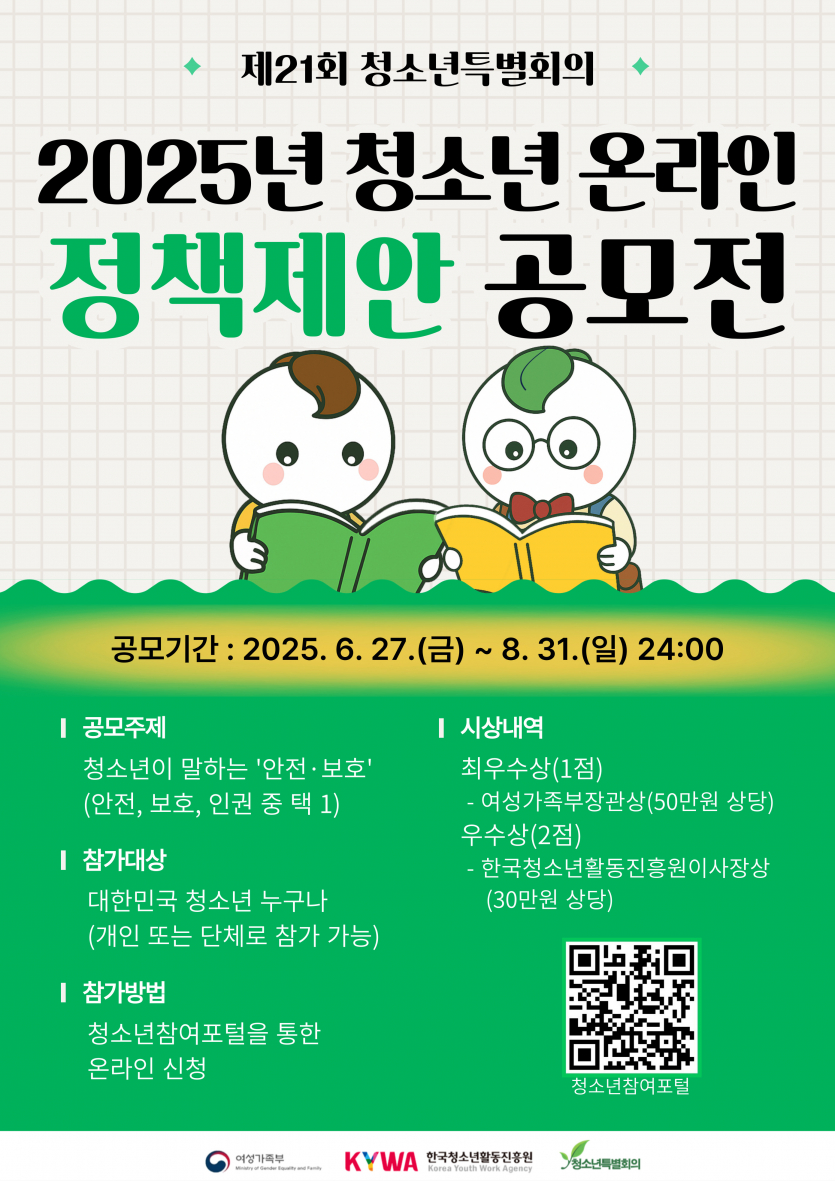 [서대문구] [한국청소년활동진흥원] 2025년 청소년 온라인 정책제안 공모전 안내