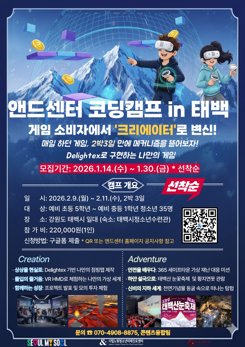 [노원구] [시립노원청소년미래진로센터] 2026년 앤드센터 겨울방학 코딩캠프 참가자 모집 안내