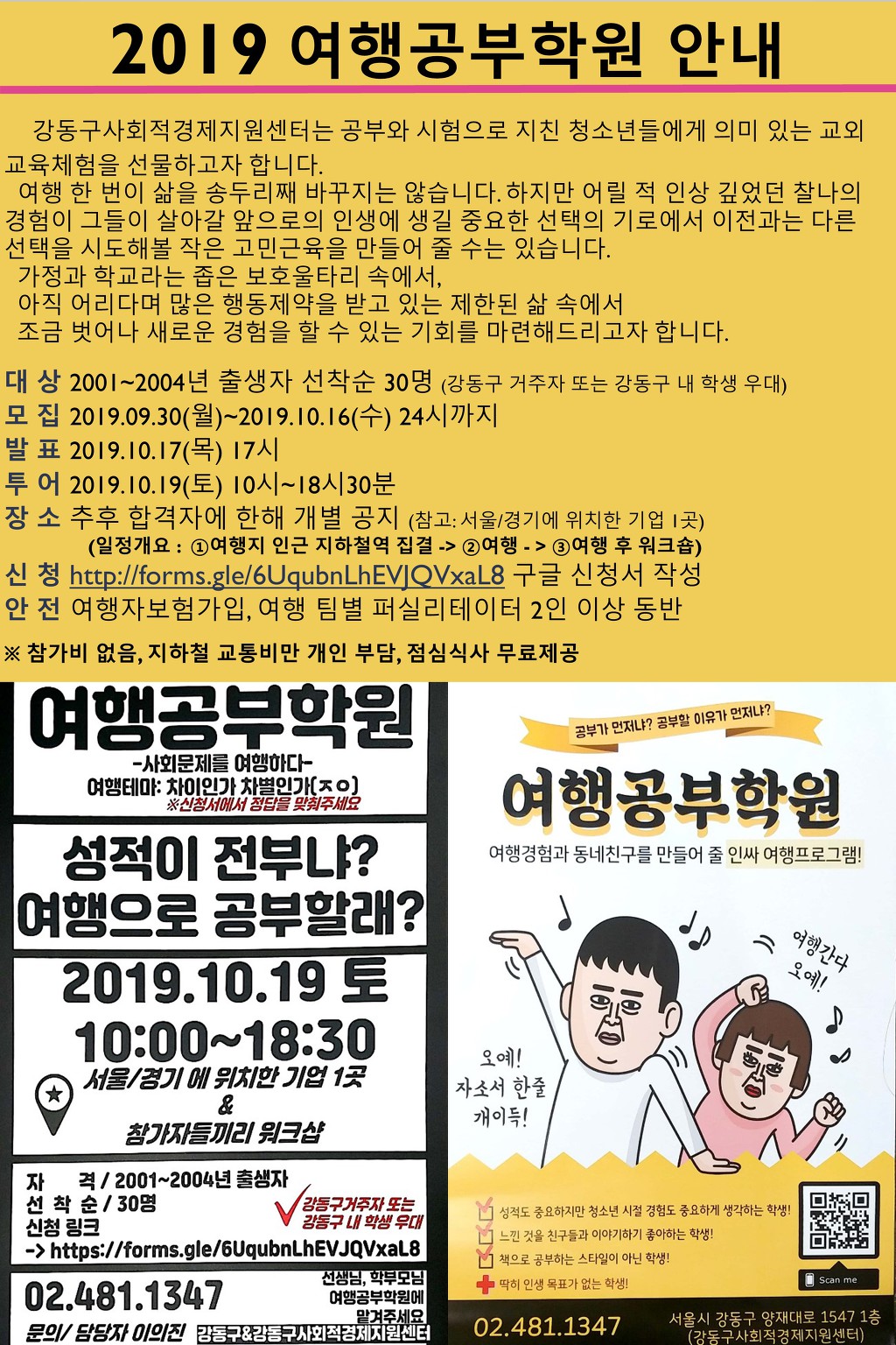 강동구사회적경제지원센터에서 공부와 시험으로 지친 청소년들을 위해 교육여행프로그램을 준비했습니다.