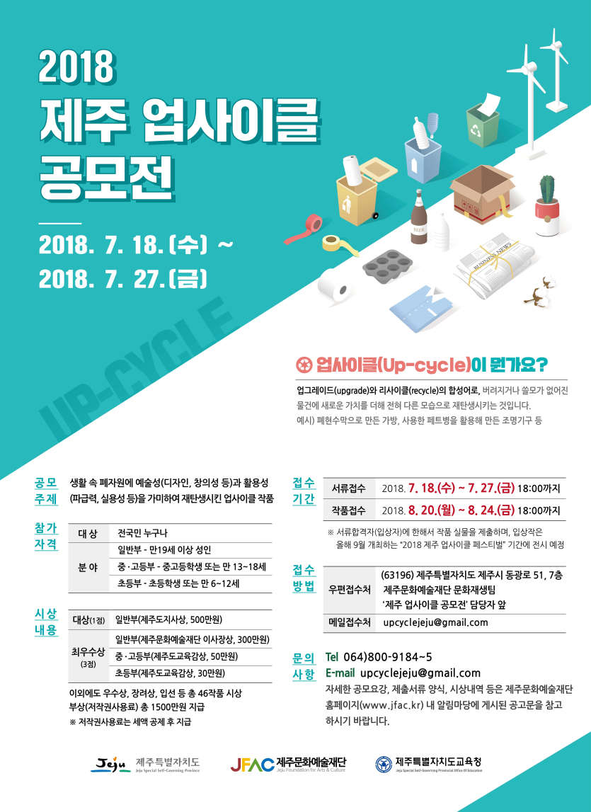 ※ 입상작은 올해 9월 개최하는 '2018 제주 업사이클 페스티벌' 기간에 전시 예정