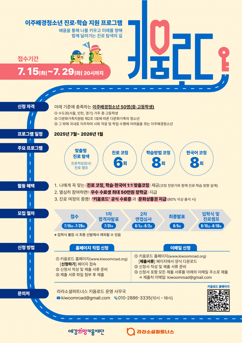 [서울 외] [예강희망키움재단] 이주배경청소년 진로·학습 지원 프로그램 [키움로드]