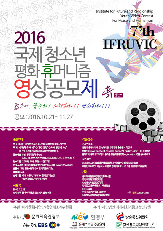 2016년도 7회 국제 청소년 평화.휴머니즘 영상제 (약칭: 휴영제) 개최를 다음과 같이 공고합니다.