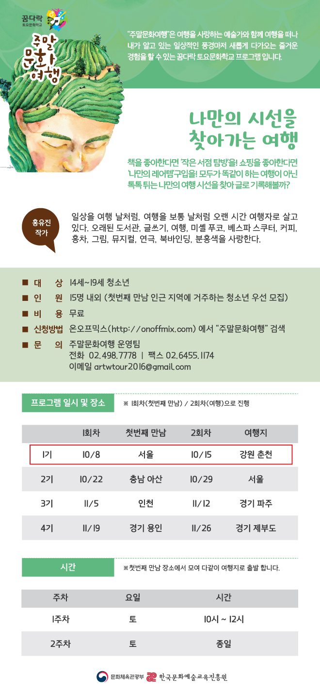 <2016 꿈다락 토요문화학교 주말문화여행> 프로그램에 참여할 청소년을 모집합니다!