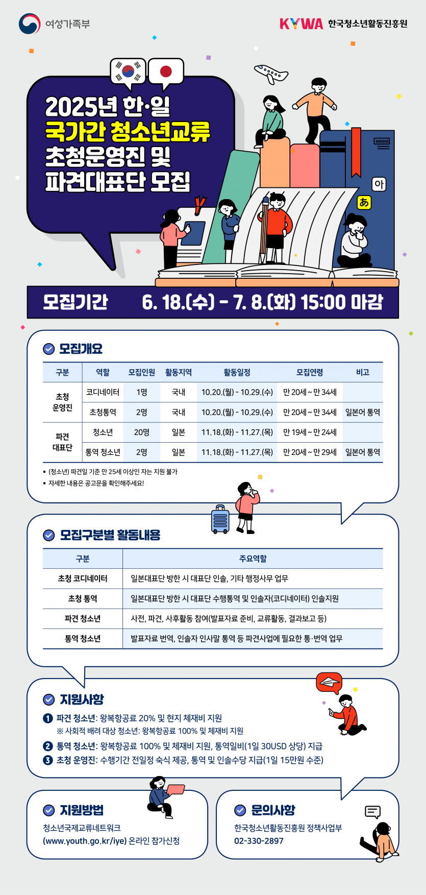 [서대문구] [한국청소년활동진흥원] 2025년 한·일 국가간 청소년교류 파견대표단(청소년, 통역) 및 초청운영진(인솔, 통역) 모집 안내