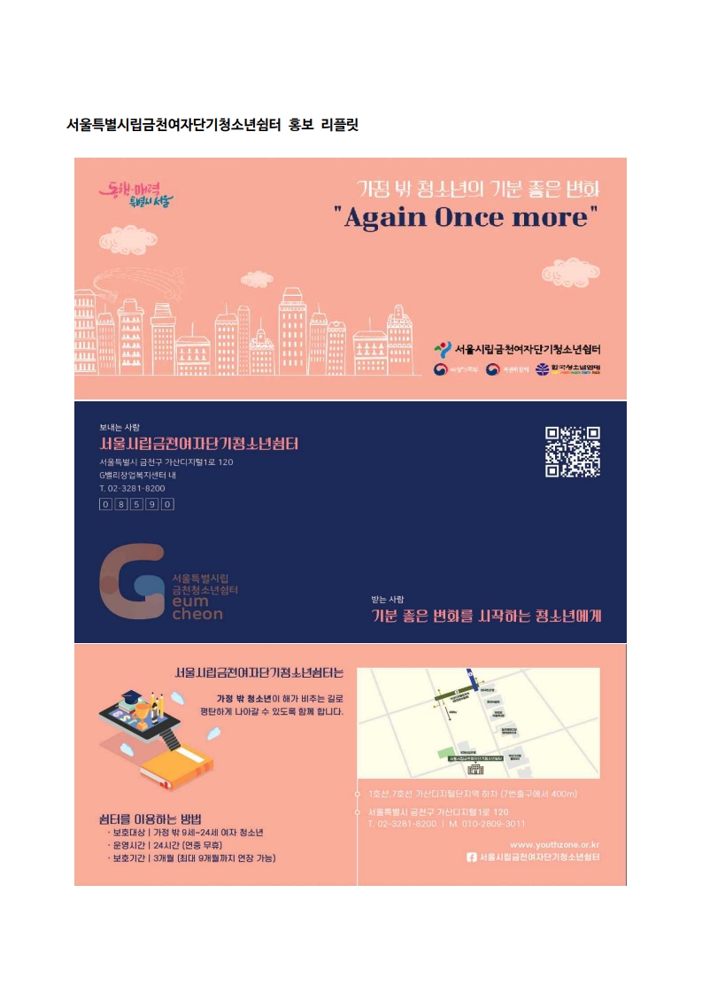 [금천구] [금천여자단기청소년쉼터] 가정 밖 여자청소년 쉼터 입소 연계 안내
