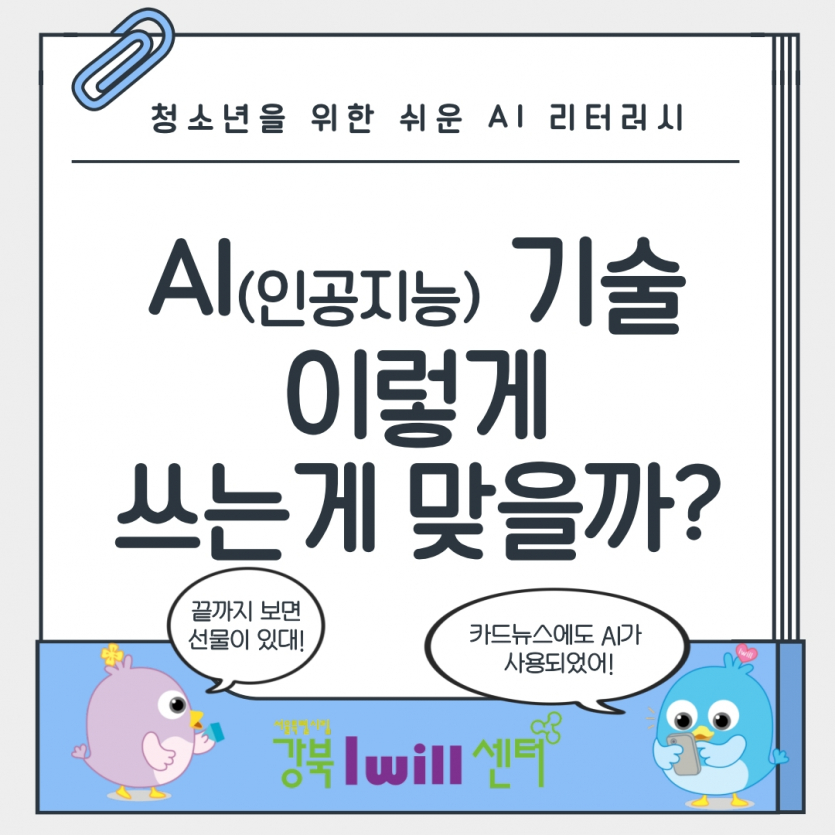[강북구] [강북인터넷중독예방상담센터] 2025년 강북인터넷중독예방상담센터 2차 카드뉴스(AI리터러시) 배포