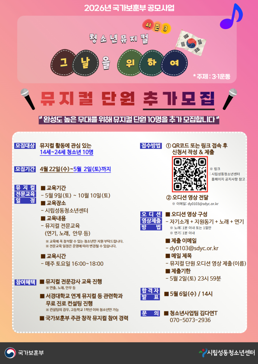 다. 지원자격: 뮤지컬 활동에 관심 있는 14세~24세(중학교 1학년 ~ 후기 청소년) 청소년