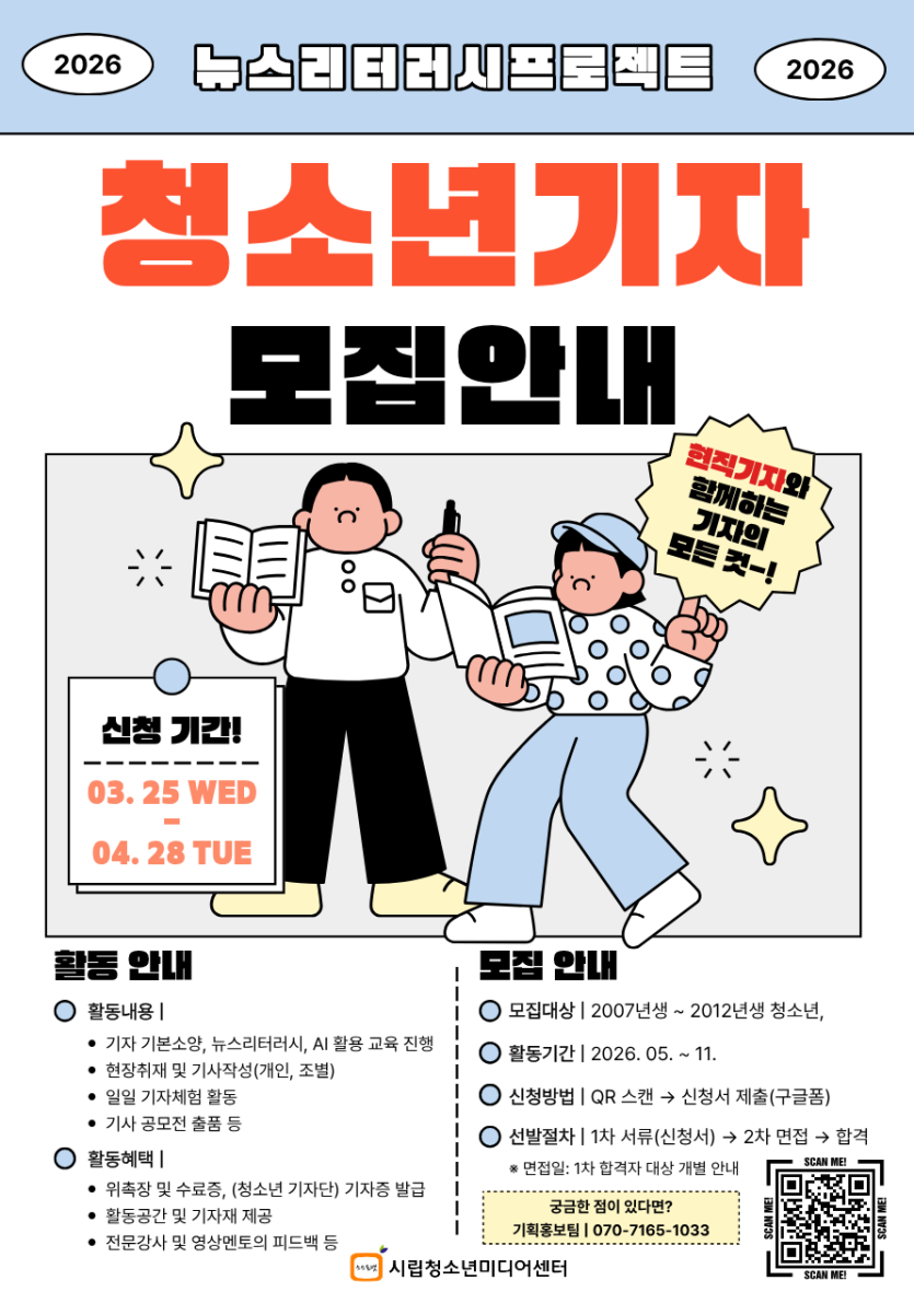 [용산구] [청소년미디어센터] 청소년기자단 '뉴스리터러시 프로젝트' 모집