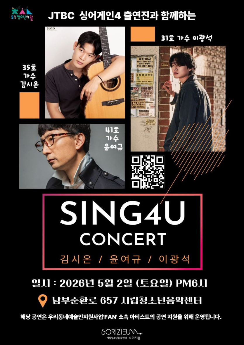 [양천구] [청소년음악센터] 싱어게인4 출연진과 함께하는 <SING 4 U 콘서트> 무료 공연 관람객 모집 안내