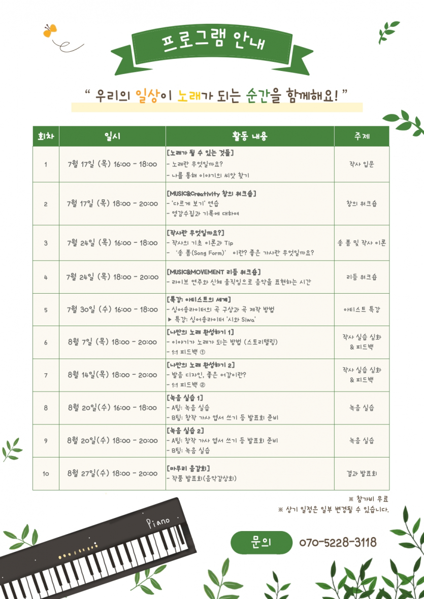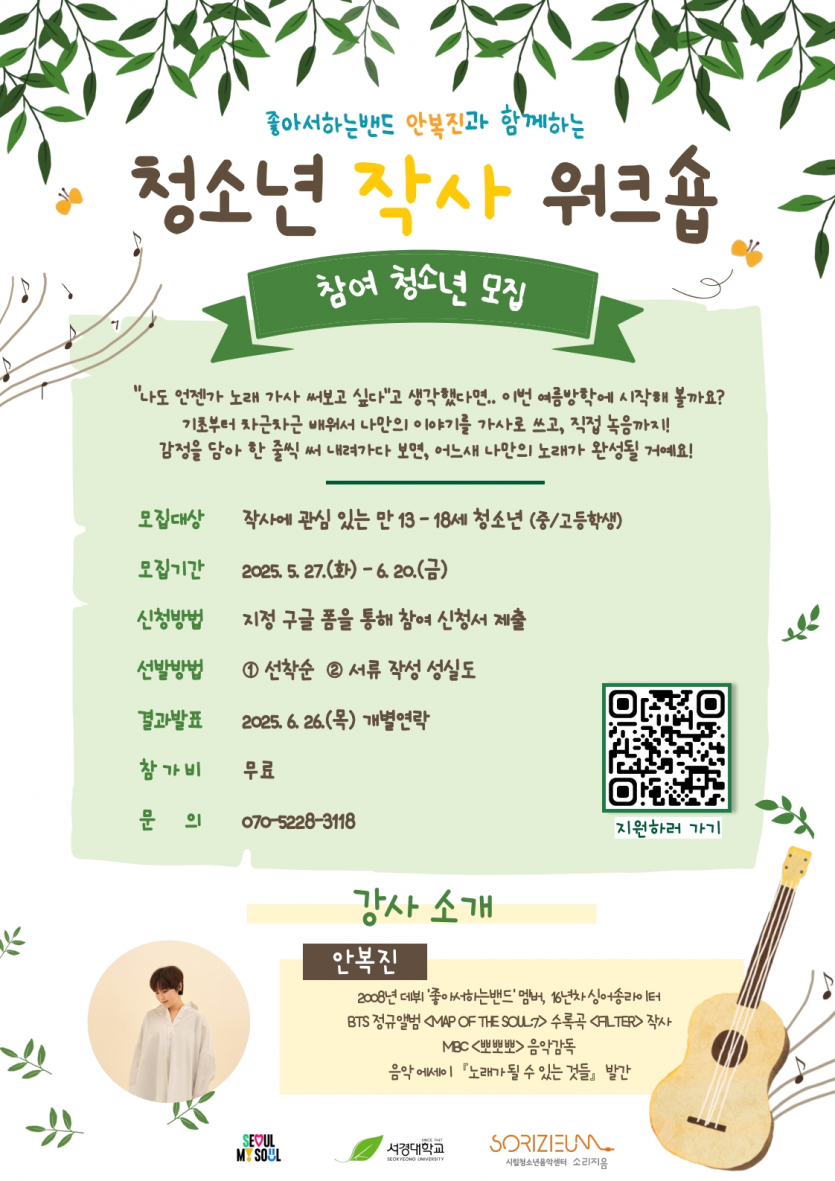 [양천구] [청소년음악센터] 2025년 <청소년 작사 워크숍> 참여 청소년 모집 안내