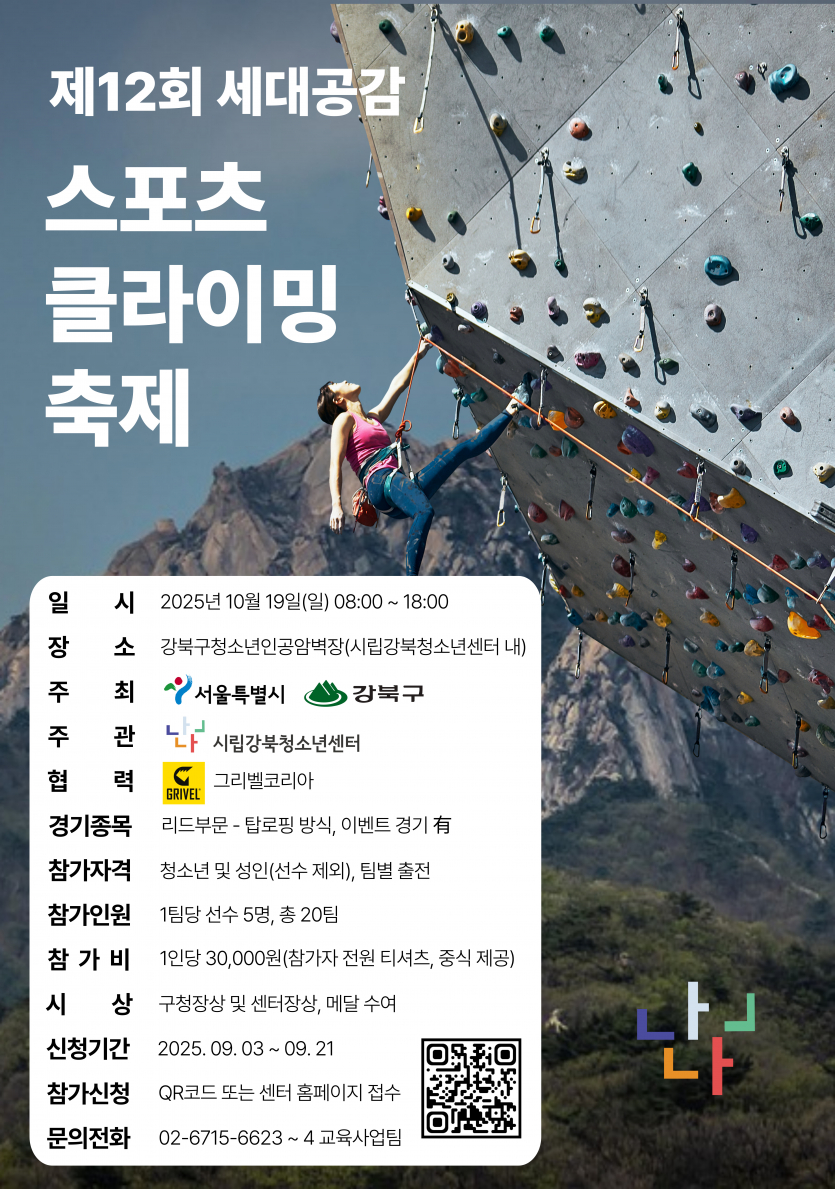 [강북구] [강북청소년센터] 2025년 제12회 세대공감 난나 스포츠클라이밍 축제 안내