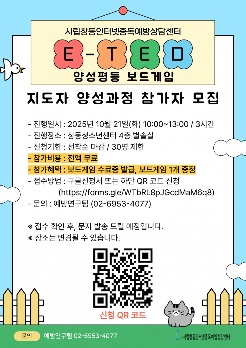 [도봉구] [창동인터넷중독예방상담센터] 디지털 양성평등보드게임 지도자 양성교육 안내